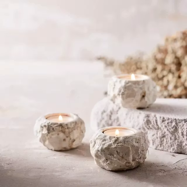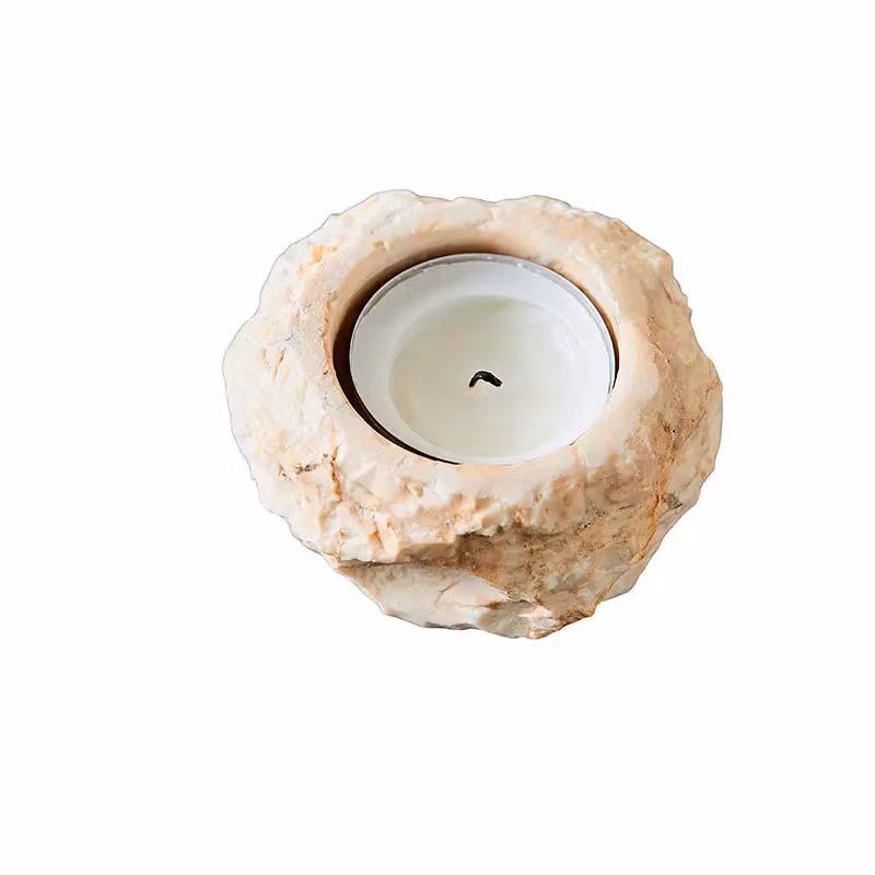 Each tea light candle holder has its own unique expression in shape and color depending on nuances of the natural marble stone.