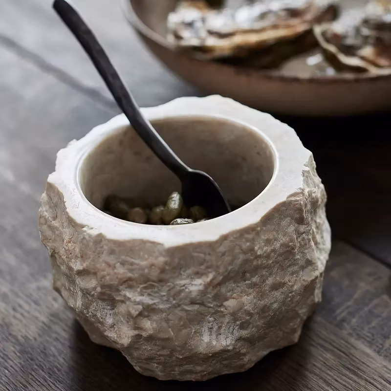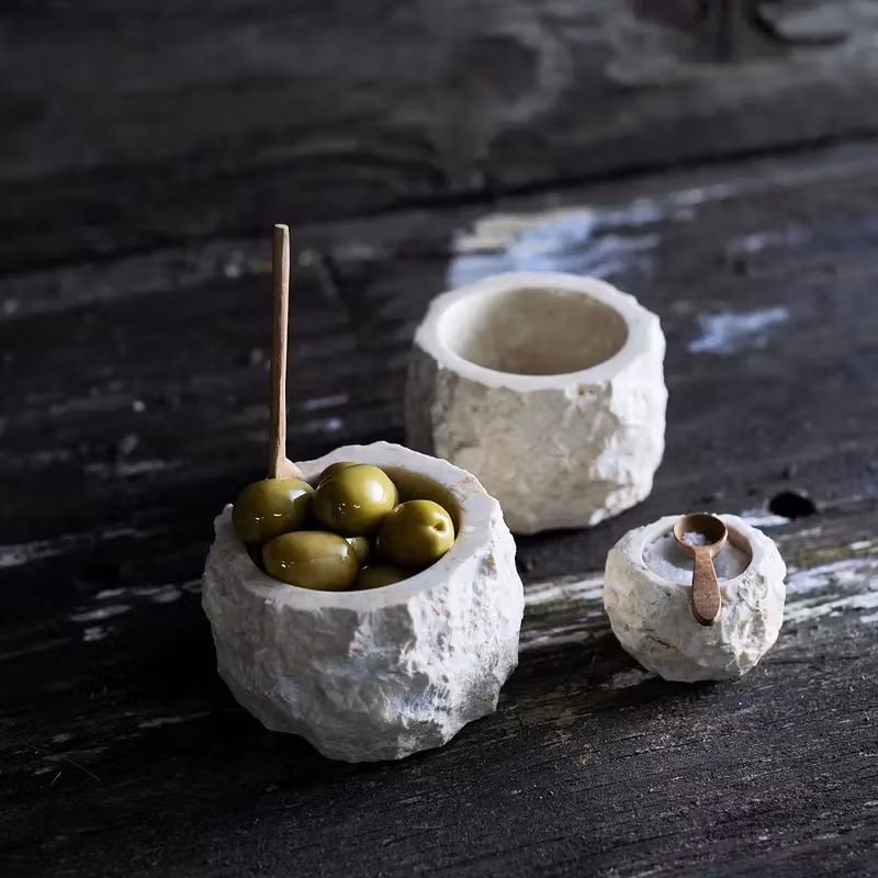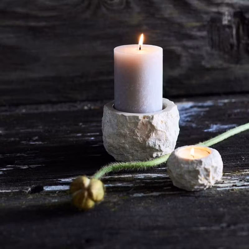 The Batu candle holder is made of marble that comes from Indonesian mountainsides is characterized by the stone’s beautiful, light shades and nuances.