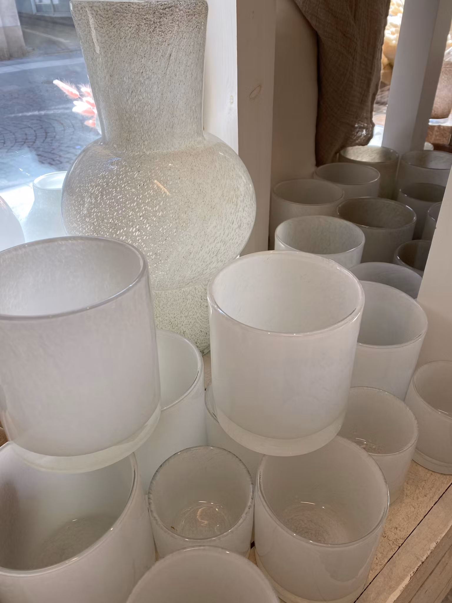 En ljuslykta i glas som ger ifrån sig ett vackert sken när den är tänd. Fin att kombinera med dom andra färgerna och storlekarna.