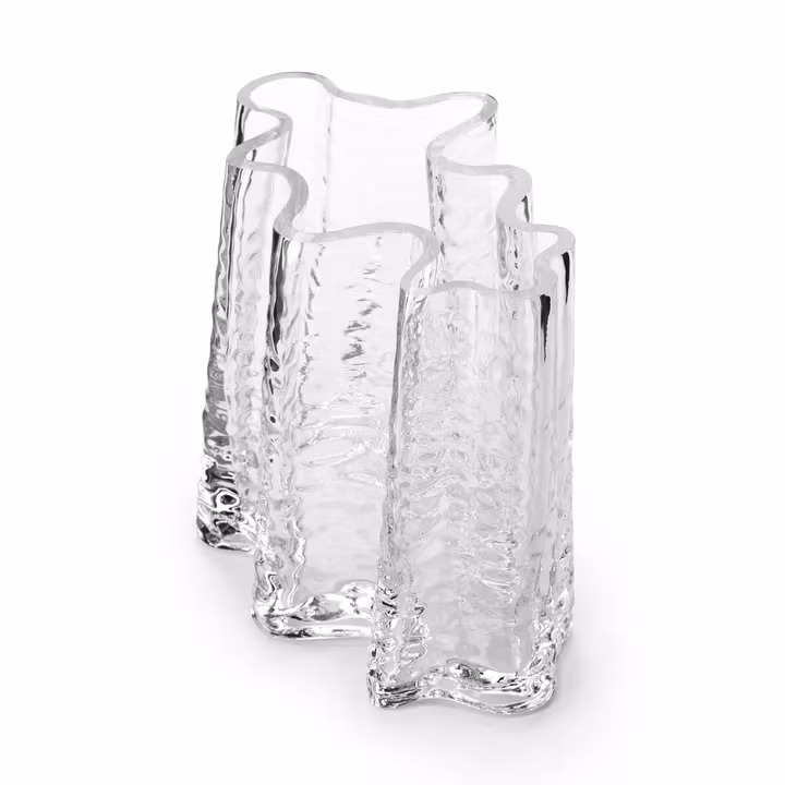 Gry wide vas 19 cm från svenska Cooee Design är en elegant vas formgiven av Tim Torp Hansen som inspirerats av trädstammens organiska form. Den vackra vasen är detaljrik och en glasskulptur som belyser vattnet och blommorna som placerats däri då dagsljuset skiner genom glasstrukturen. Placera levande eller torkade växter i den vasen med böljande form och låt den bli en mittpunkt på vardagsrumsbordet. Kombinera den gärna tillsammans med fler delar ur Gry-serien från Cooee Design.