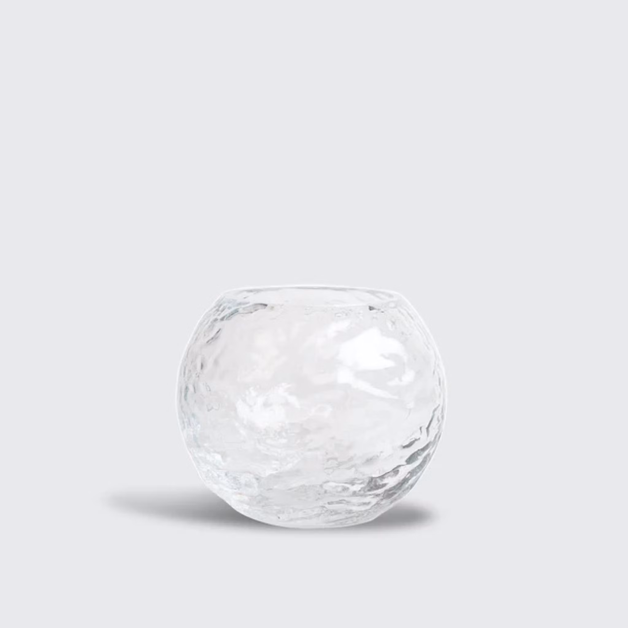 Som en liten såpbubbla med en perfekt rund form och en vackert strukturerad yta. En mindre vas som är organisk och självständig, som tror på sig själv och inreder hemmet med en självklar kaxig skörhet. Använd ensam för trädgårdens blommor, med ett värmeljus eller duka med flera på ett långbord. Ju fler desto bättre brukar det ju heta, och det stämmer även här. Tillverkad i handgjort och handblåst klarglas.