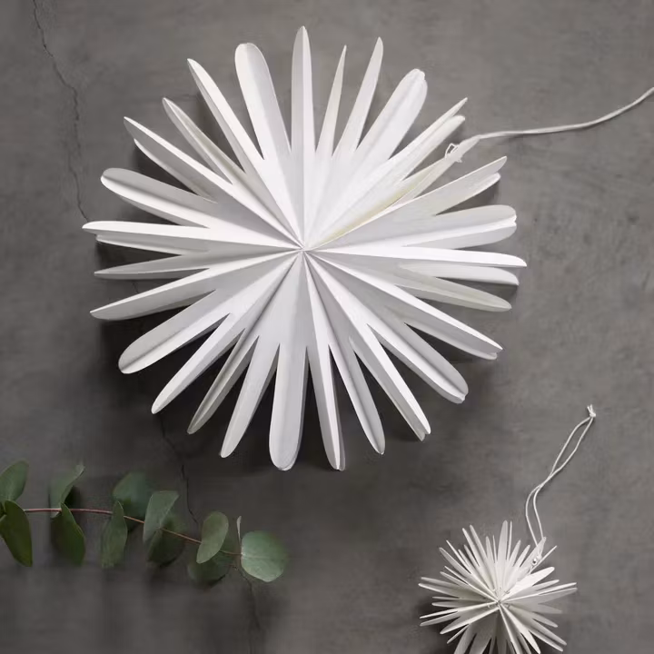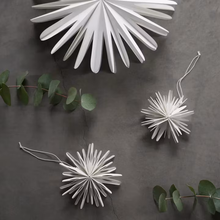 Paper flake julhänge från svenska DBKD är en söt pappersdekoration i form av en snöflinga. Häng den i granen till jul eller i ett fönster under vintermånaderna för den där rätta myskänslan. Dekorationen finns i olika storlekar som är fina att kombinera.