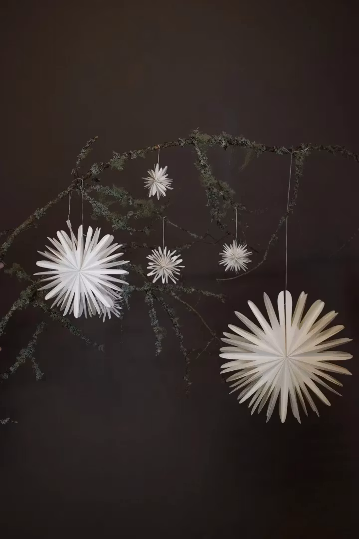 Paper flake julhänge från svenska DBKD är en söt pappersdekoration i form av en snöflinga. Häng den i granen till jul eller i ett fönster under vintermånaderna för den där rätta myskänslan. Dekorationen finns i olika storlekar som är fina att kombinera.