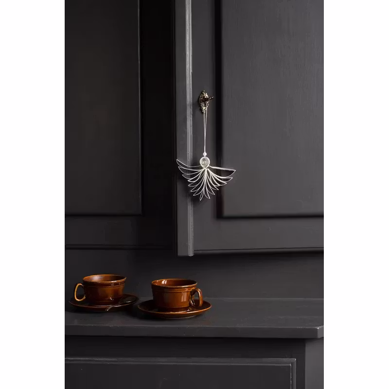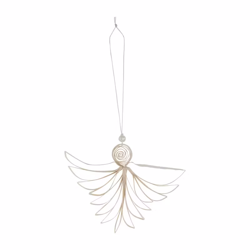 Angel julhänge Ø10 cm från svenska Watt & Veke har en abstrakt design föreställande en ängel med skira vingar och ett runt huvud med en pärla ovanför. Juldekorationen hängs enkelt upp i julgranen eller i fönstret med hjälp av det tillhörande snöret. Låt ängeln skapa en magisk julstämning i hemmet och matcha den med dina övriga dekorationer.