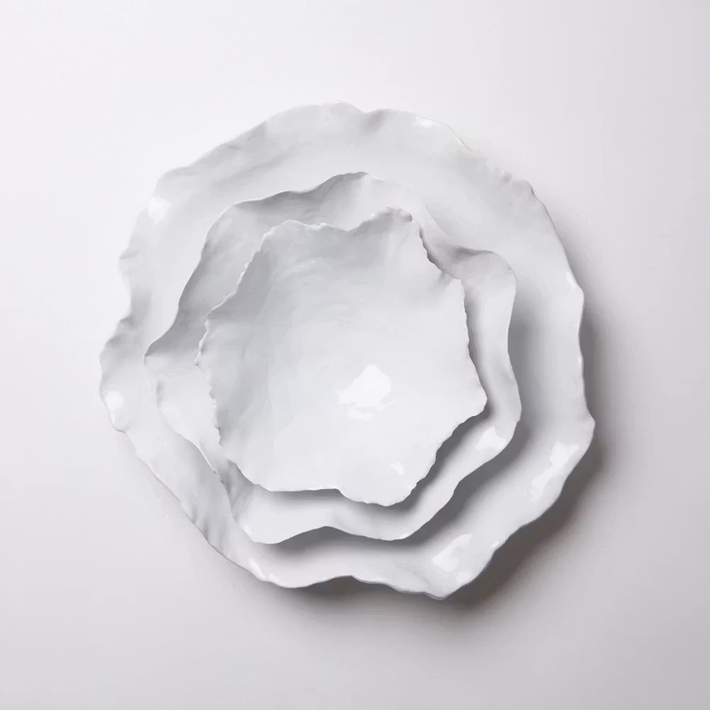 Skapa en annorlunda och fantasifylld dukning med Olsson & Jensen porslinsfat! Serveringsfatet har ett rått men samtidigt elegant uttryck och ser nästan ut som ett vackert ostronskal. Servera en härlig sallad ur fatet och låt det bli ett riktigt statement piece på middagsbordet!