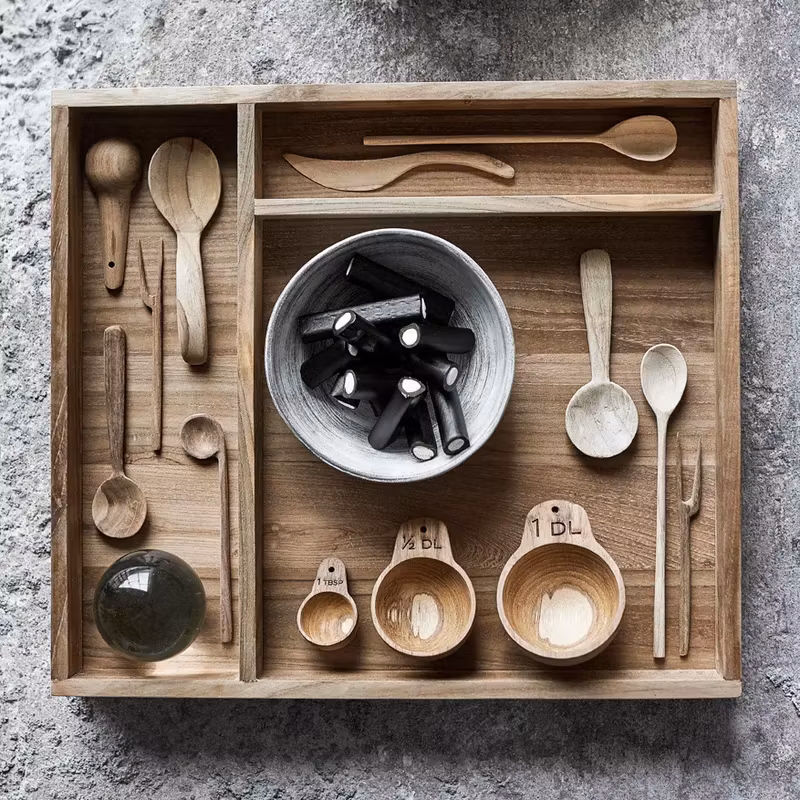 Emma måttsats från danska Muubs har ett vackert och naturligt uttryck och blir ett välanvänt tillskott i köket. Satsen inkluderar ett mått för 1 dl, 1/2 dl och 1 matsked och hjälper dig att mäta upp rätt mängd av ingredienserna för både bakning och matlagning.
