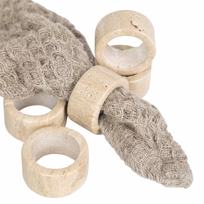 Komplettera din bordsdukning med dessa servettringar i Travertin.Säljs styckvis. Variationer kan förekomma.