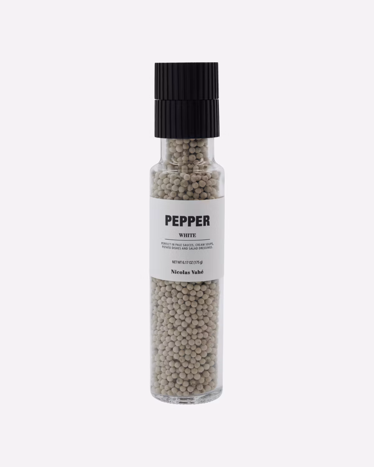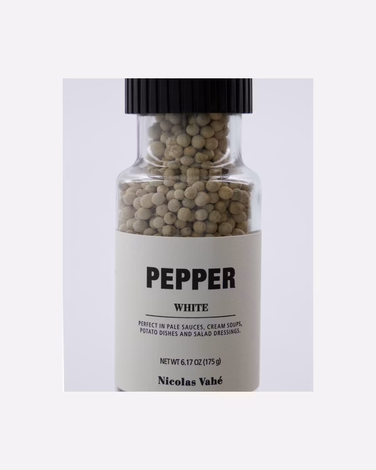 Vitpeppar odlat i Vietnam och Brasilien från Nicolas Vahé i underbart fin glasförpackning. Kvarnen är keramisk vilket ger dig finmalda pepparkorn.