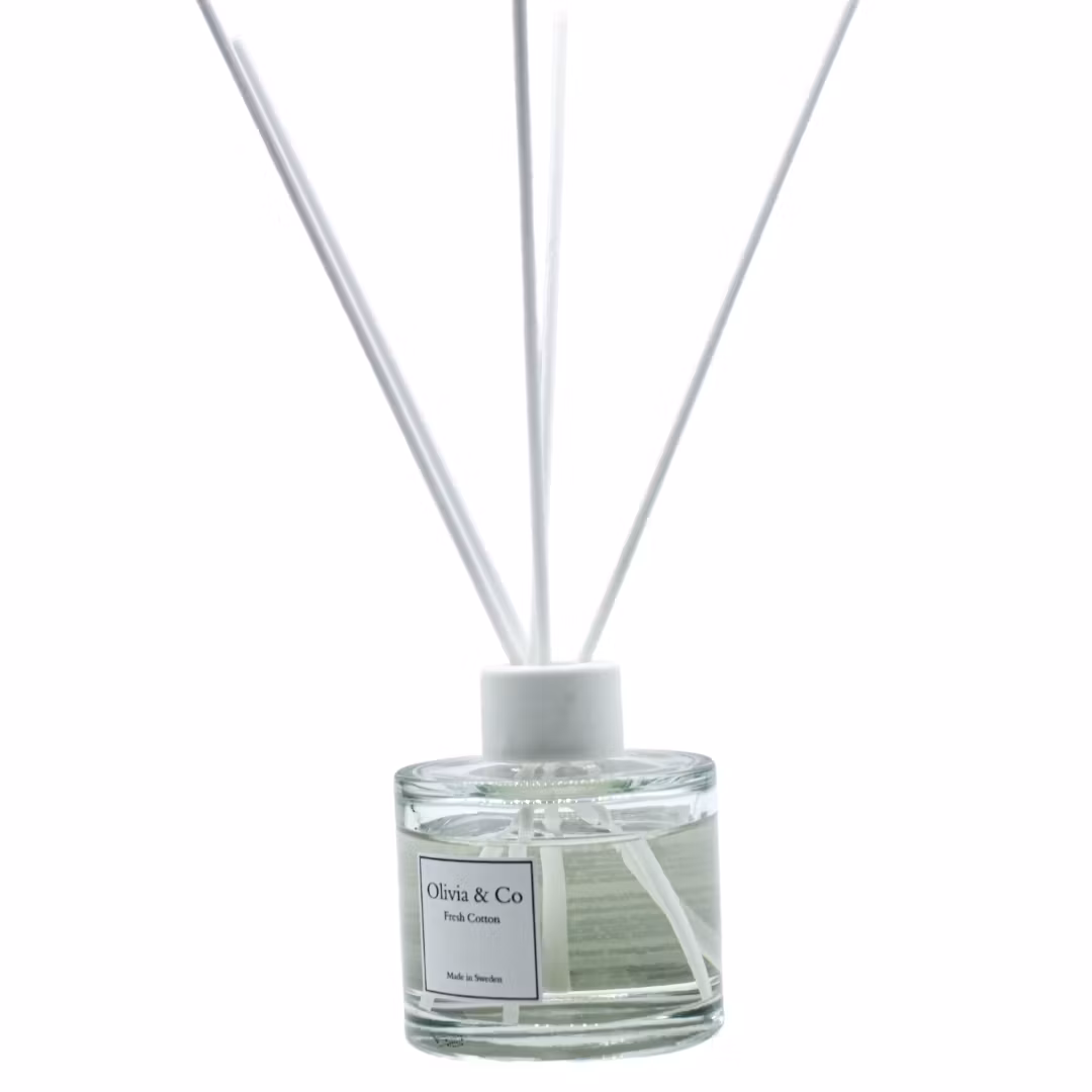 Doften Fresh Cotton tar dig ut till kläderna som fått hänga ute och soltorka under dagen. Den rena och fräscha doften har inslag av aldehyder, äpple, kamomill och citronskal, hjärtnoter av cyklamen, vita blommor och roskristaller. Basnoter består av lätt patchouli, ren mysk och sandelträ. Doftpinnar utsöndrar en fräsch och behaglig doft i önskad miljö. Sätt ner pinnarna i glasbehållaren fylld med den goda doftoljan. Vänd på pinnarna när du vill att det ska dofta mer.