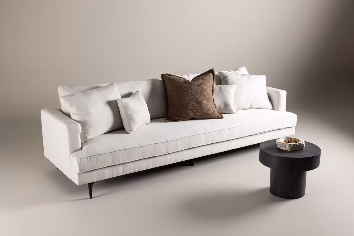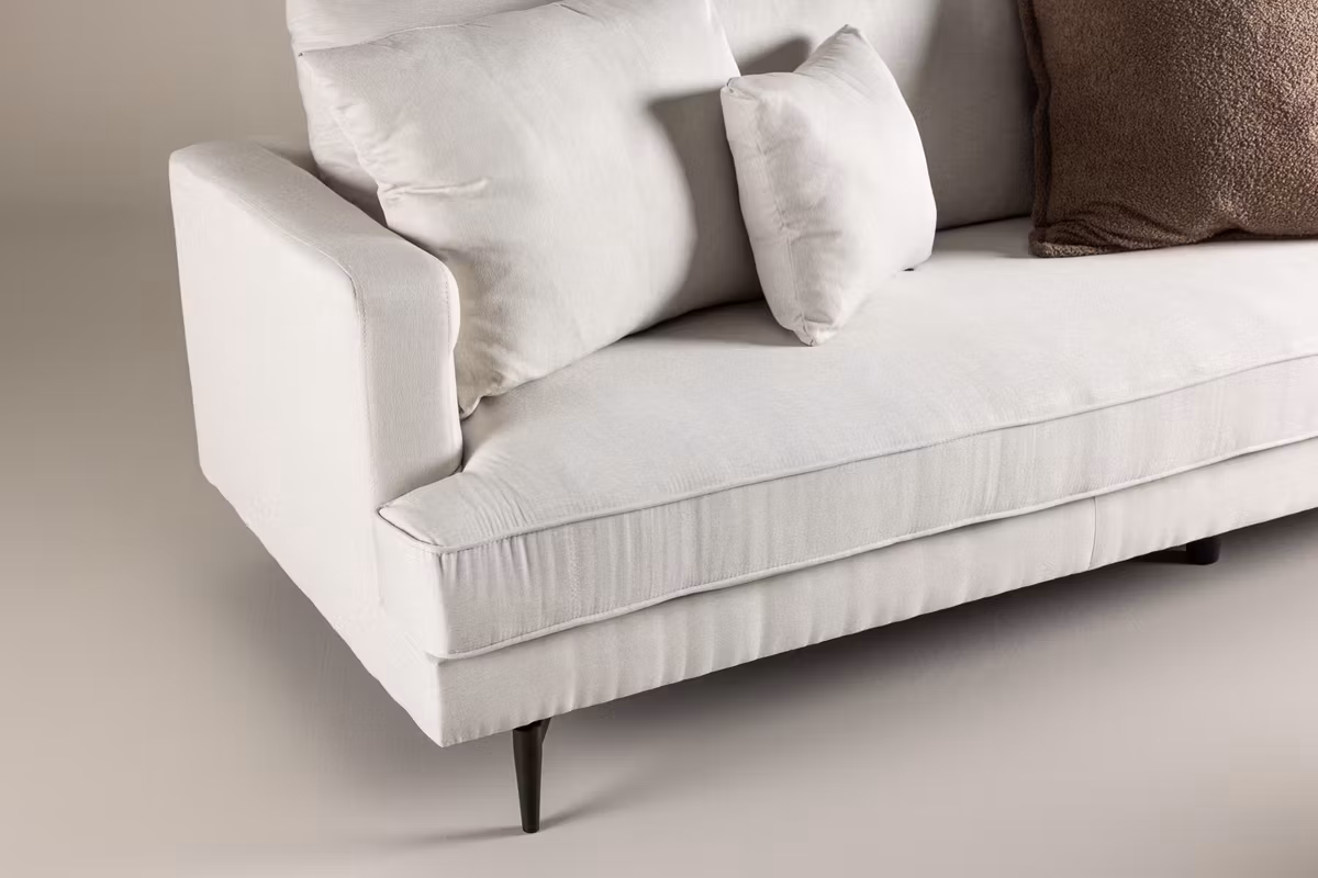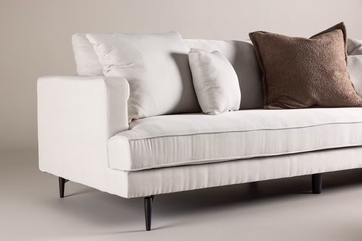 En soffdröm för alla moderna linneälskare just nu! Den här beige soffan från serien Sofia är en rymlig 3-sits soffa med stilren klädsel i beige linne med fokus på hög komfort. Följ våra tips för bästa skötsel så får du dessutom en soffa som står sig över tid. Designen är både iögonfallande och avslappnande med sin mjuka och inbjudande utsida som passar perfekt att sjunka ner i efter en lång dag. Soffan byggs upp utav kuddar som utgör ryggstödet och pryder även armstöden. Den bärs upp av fyra ben i svart metall som ger ett schysst lyft och underlättar för dammsugaren. Lika snygg som praktisk helt enkelt. Mys tillsammans med familjen eller bred ut dig ensam!