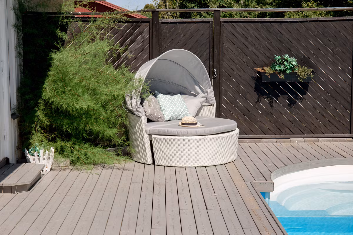 Padova, en lyxig solsäng som bjuder in till många slappa timmar i sommar. Den moderna färgskalan och genomtänka designen ger dig en funktionell och snygg solsäng. Med justerbar takdel väljer du själv när du vill ha sol och skugga - praktiskt, smidigt och bekvämt! Stommen är tillverkad av vit konstrotting med tillhörande ljusgrå fluffiga dynor. Följ våra tips för skötsel så får du en slitstark utomhusmöbel som håller länge! Skötselråd: Konstrotting är ett plastmaterial som passar alldeles utmärkt för vårt skandinaviska klimat. Materialet är UV-beständigt och tåler väder och vind. Att det är UV-beständigt gör att möblerna inte bleknas, däremot rekommenderar vi alltid att förvara möblerna under ett möbelskydd eller på annat vis torrt och svalt – för att förlänga livslängden.