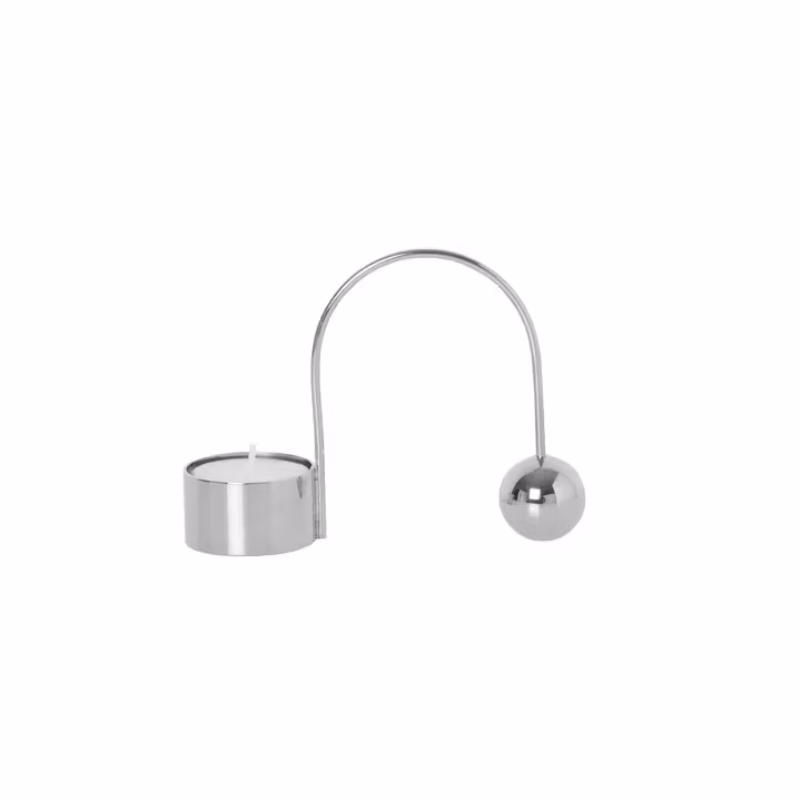 Balance krom ljusstake från danska Ferm Living balanserar elegans med funktionalitet. Den geometriska formen på ljusstaken avslutas med en vacker liten kula som också kan användas som ett handtag. Denna ljusstake passar in i många olika inredningsstilar och är en fin och uppskattad present. Tänk på att släcka ljuset innan det brunnit ner helt för att undvika märken på ljusstaken.
