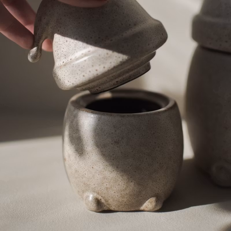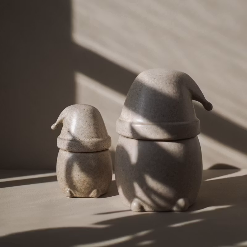 Eating Santa från DBKD är en liten burk med lock i form av en minimalistisk tomtenisse. Lyft på luvan och förvara julgodiset inuti. Kombinera gärna med den större storleken av Eating Santa.