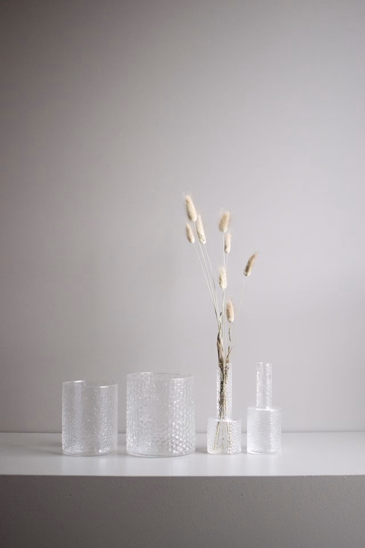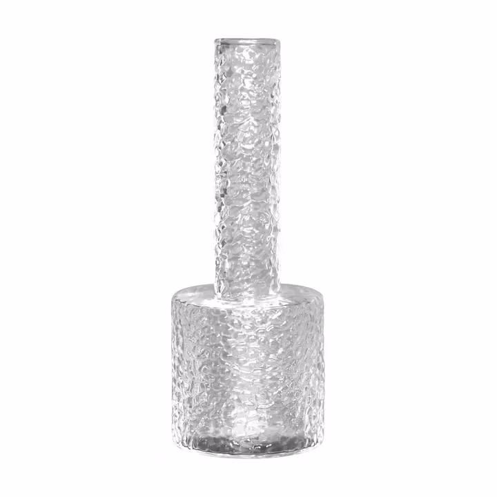 Airy vas smal klar från svenska DBKD är en stilren vas med bubblig yta. Blomvasen är med sin breda kropp och smala hals, perfekt till en enstaka stjälk eller kvist. Ställ exempelvis vasen på skänken i hallen som en härlig, välkomnande dekoration.