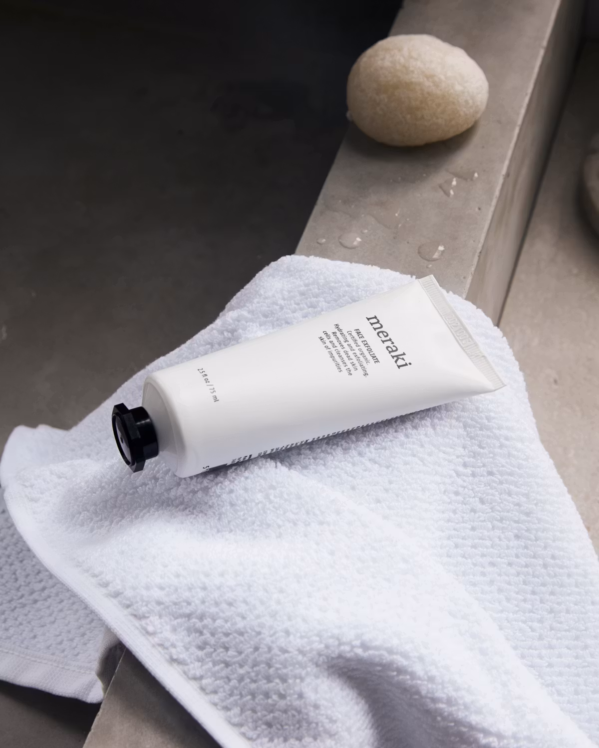 Få en omedelbar lyster och mjuk, ren hud med denna exfoliator från Meraki. Små aprikoskärnor tar varsamt bort orenheter och döda hudceller. För att förhindra ålderstecken och för att skydda din hud med sin antioxiderande effekt har rapsolja och extrakt från bruna alger lagts till i formeln.