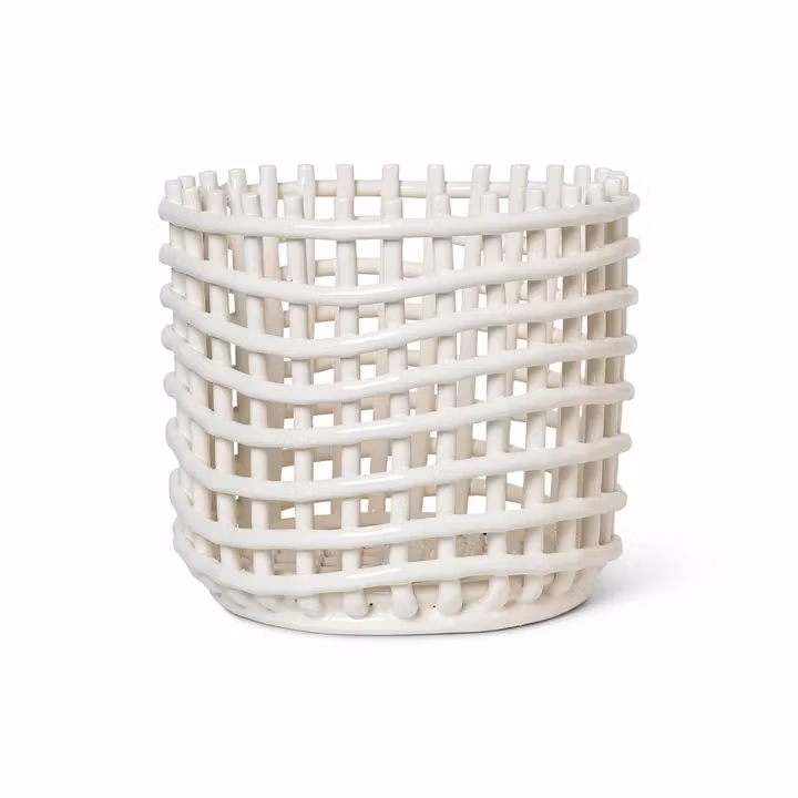 Denna korg från Ferm Living är tillverkad av glaserad keramik med ett utseende likt en traditionell flätad korg. Den multifunktionella korgen kan användas både som fruktskål och som blomkruka, men är även fin att låta stå framme precis som den är.