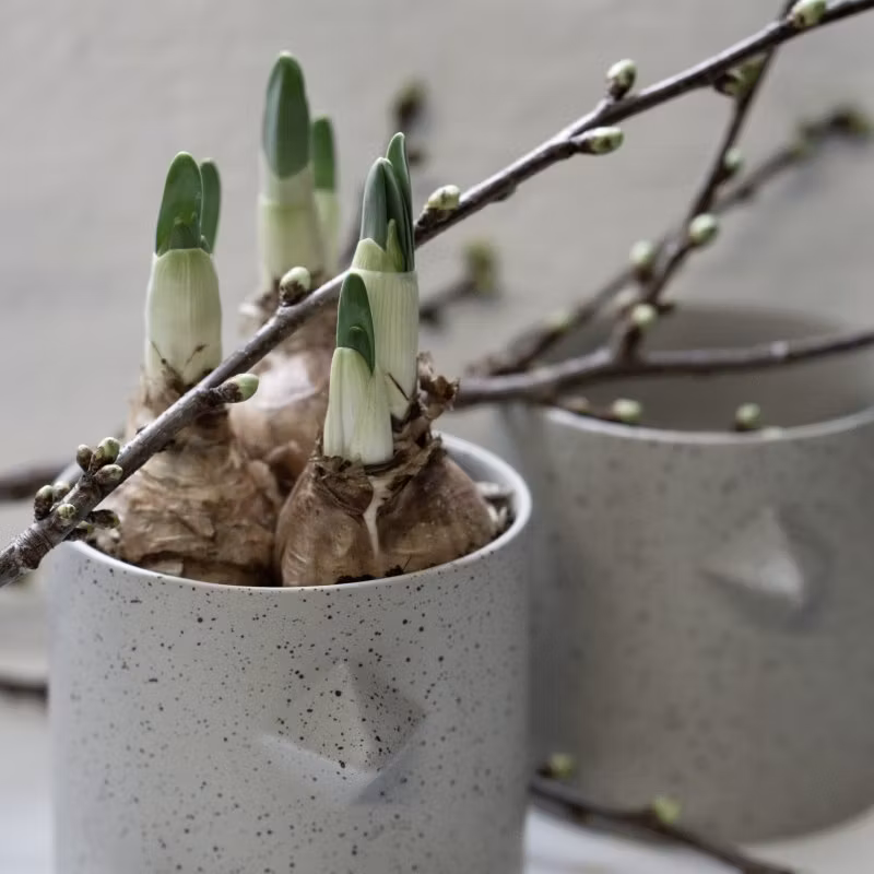 Charmig kruka som gör sig fint till vårlökarna men även passar lika bra att fylla med påskgodis eller att använda till pennorna på skrivbordet. Gjord av vitt matt stengods. Höjd: 10 cm Diameter: 10 cm
