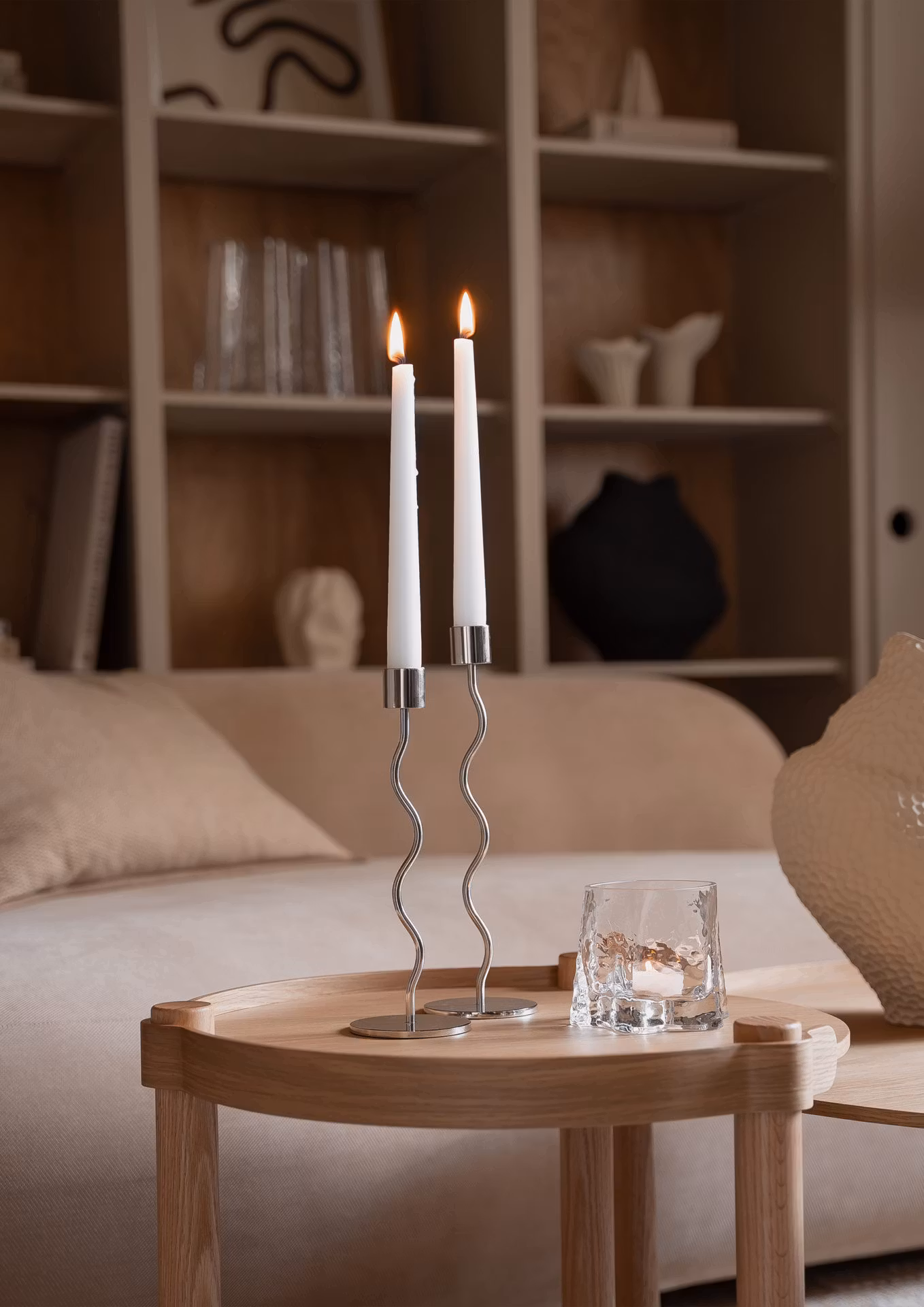 Curved candleholder är en förlängning av de mycket populära och minimalistiska ljusstakarna som finns i tre höjder och flera färger. Mixa och matcha de raka med de nya Curved candleholder. I kollektionen av ljusstakar kommer den nya varianten lanseras i två färger, svart och sand.
