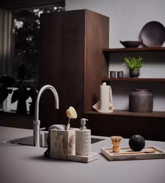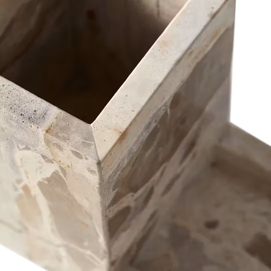 Vita diskborsthållare från Muubs är tillverkad i marmor och ingår i en serie extraordinära köksaccessoarer som förhöjer inredningen med en stark och vacker bit av naturen. De små marmorskulpturerna i Vita-serien utstrålar enastående elegans och förfining, och tillför en robust och tidlös skönhet till vilket kök som helst. Diskborsthållaren ger stil och elegans till vardagliga rutiner hemma, och kombinerar både funktionalitet och skönhet i köket. Perfekt att placera vid köksdiskbänken, både som en dekorativ detalj och som en snygg förvaringslösning för diskborstar, diskmedel och trasor. Diskborsthållaren kan också användas på kreativa sätt i badrummet, på kontoret eller i barnrummet. Den naturliga variationen i färger och mönster gör varje Vita-produkt unik och skapar en vacker kontrast med andra material i ditt kök.