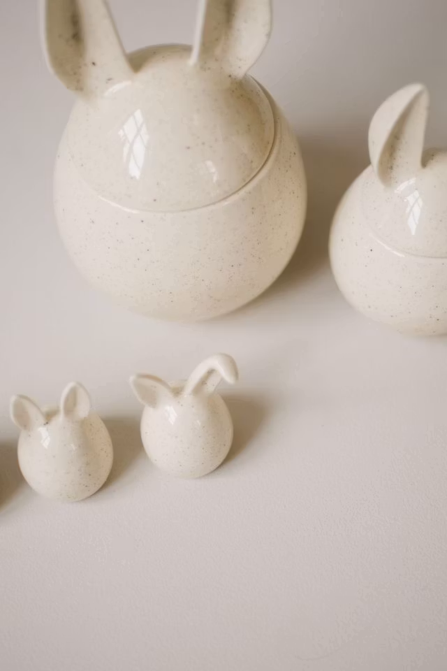 DBKD Eating rabbit skål stor kan användas som både förvaringsburk och serveringsskål för påskgodis eller småprylar. Den mjuka och minimalistiska siluetten med två kaninöron är en modern tolkning av den klassiska påskharen och blir en charmig påskdekoration på bordet eller fönsterbrädan. Glad påsk!
