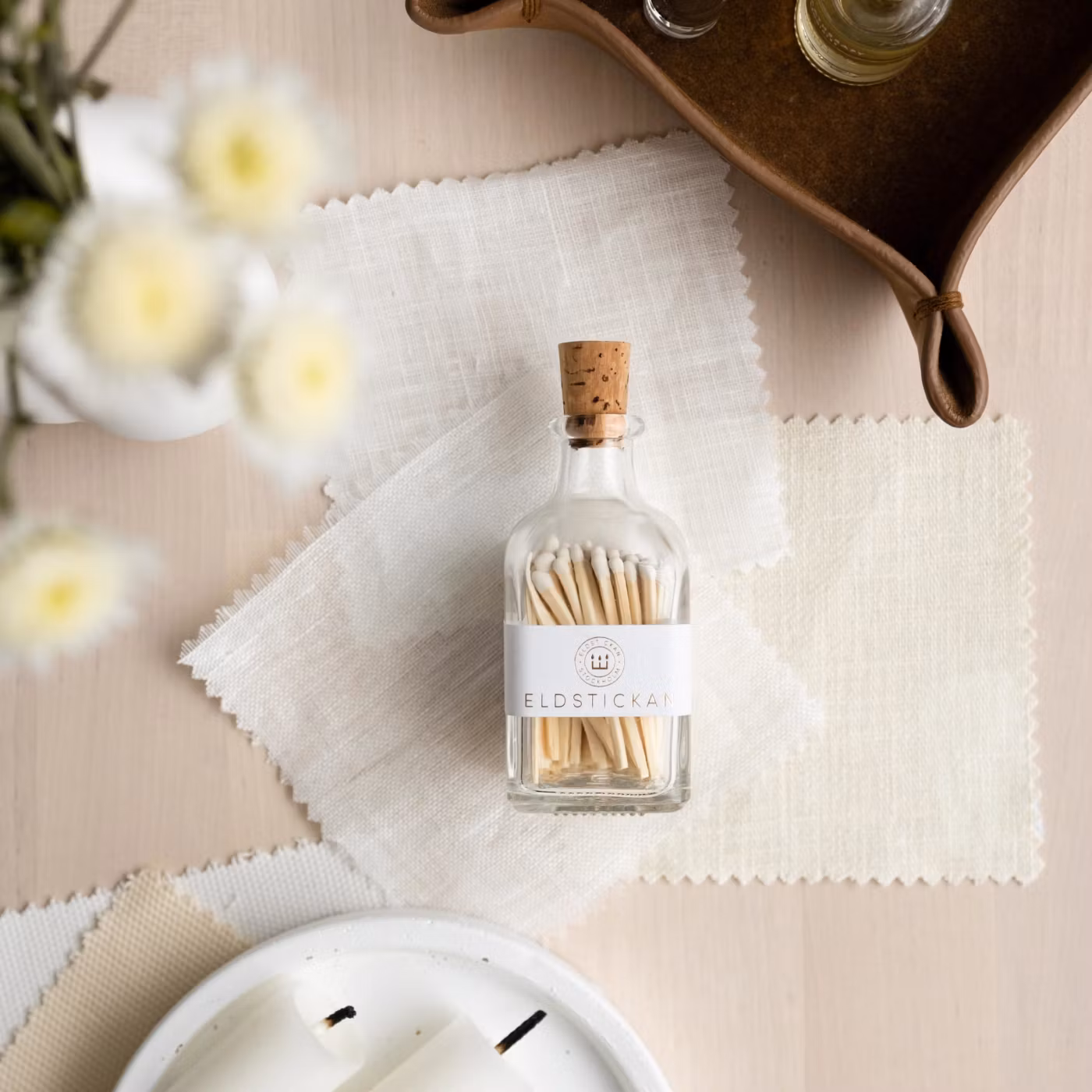 Vår nytänkande och unika design har förvandlat den klassiska tändsticksasken till en vacker inredningsdetalj. Den eleganta glasflaskan med tändstickor i utvalda färger har en plats i allas hem.