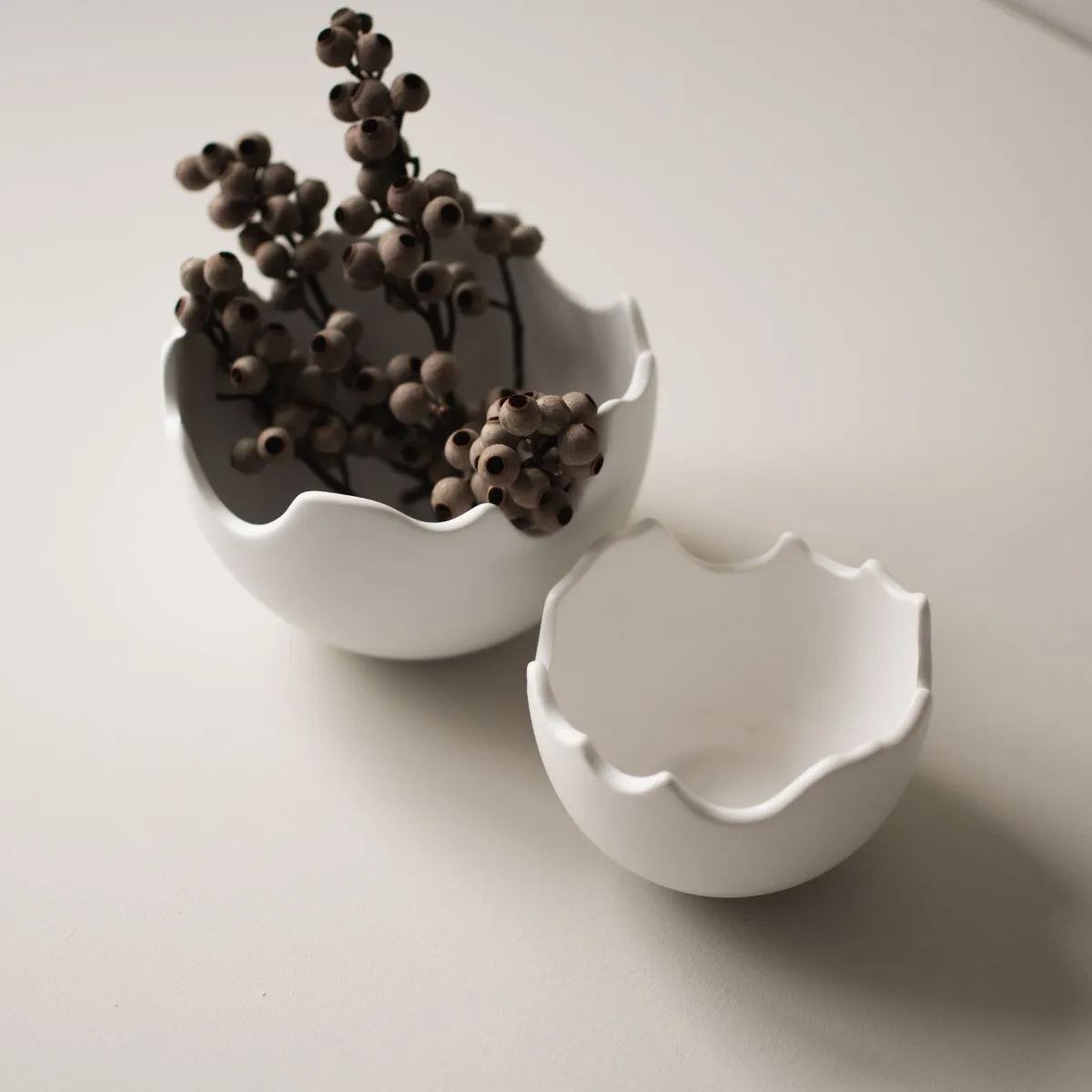 Happy Easter skål äggskal small från svenska DBKD är tillverkad i keramik och formad som en kläckt ägghalva. Perfekt till påskens läckerheter!