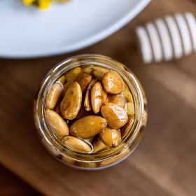 Denna akaciahonung med rostade mandlar är den perfekta följeslagaren åt desserter och läckra ostfat. Njut av kombinationen av mjukt smaksatt honung och krispiga, rostade mandlar på glass, som topping på en kaka eller som lite extra åt en underbar ostbricka. Och eftersom den kristalliseras mycket långsammare än andra typer av honung så ser den alltid bra ut och är alltid redo för användning.