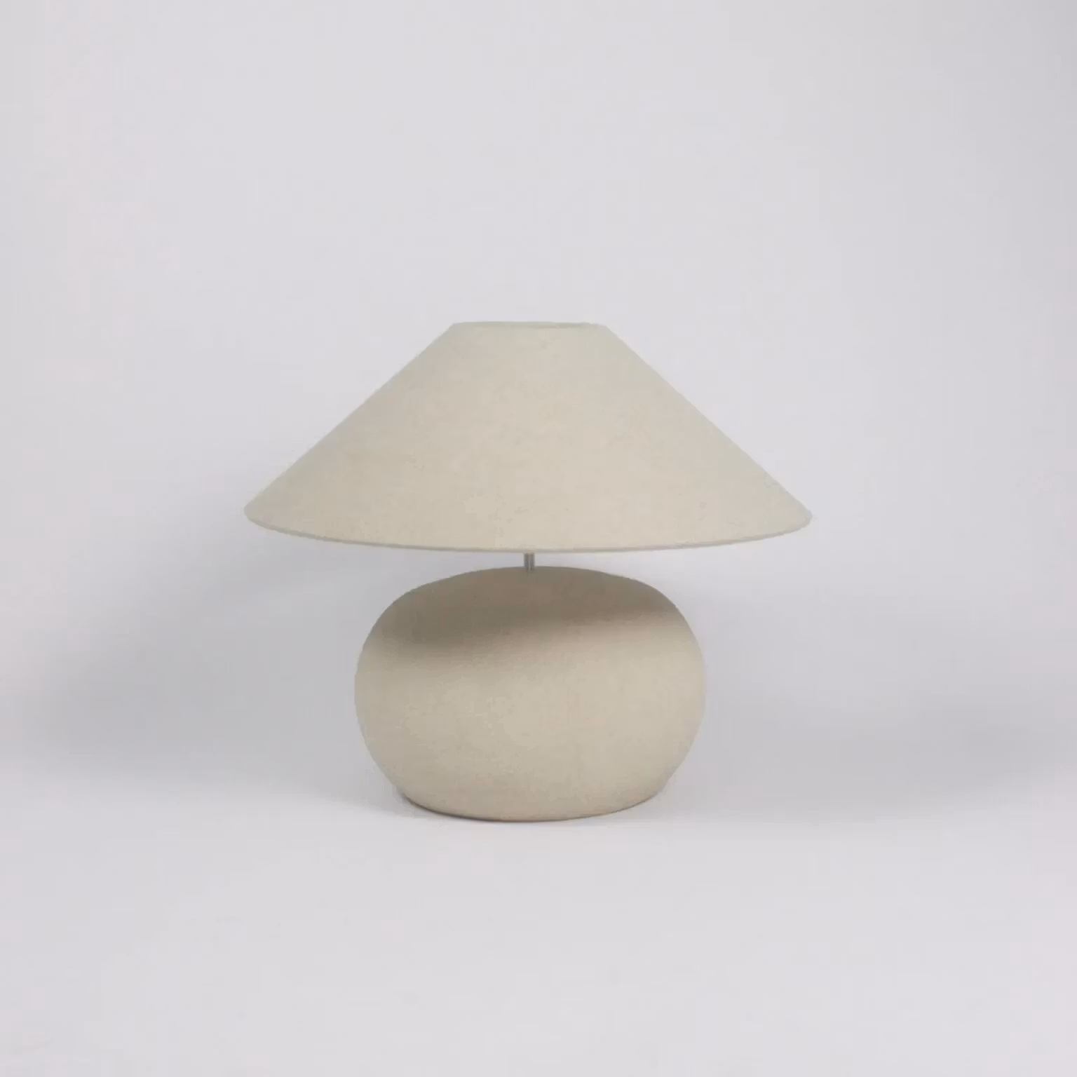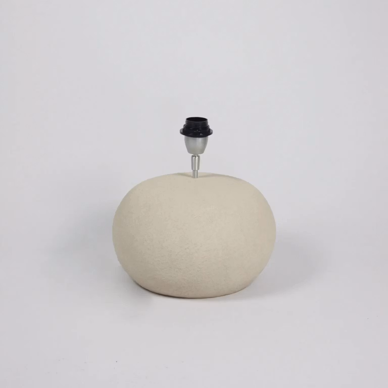 En mjukt rundad lampfot tillverkad av cement och sten.