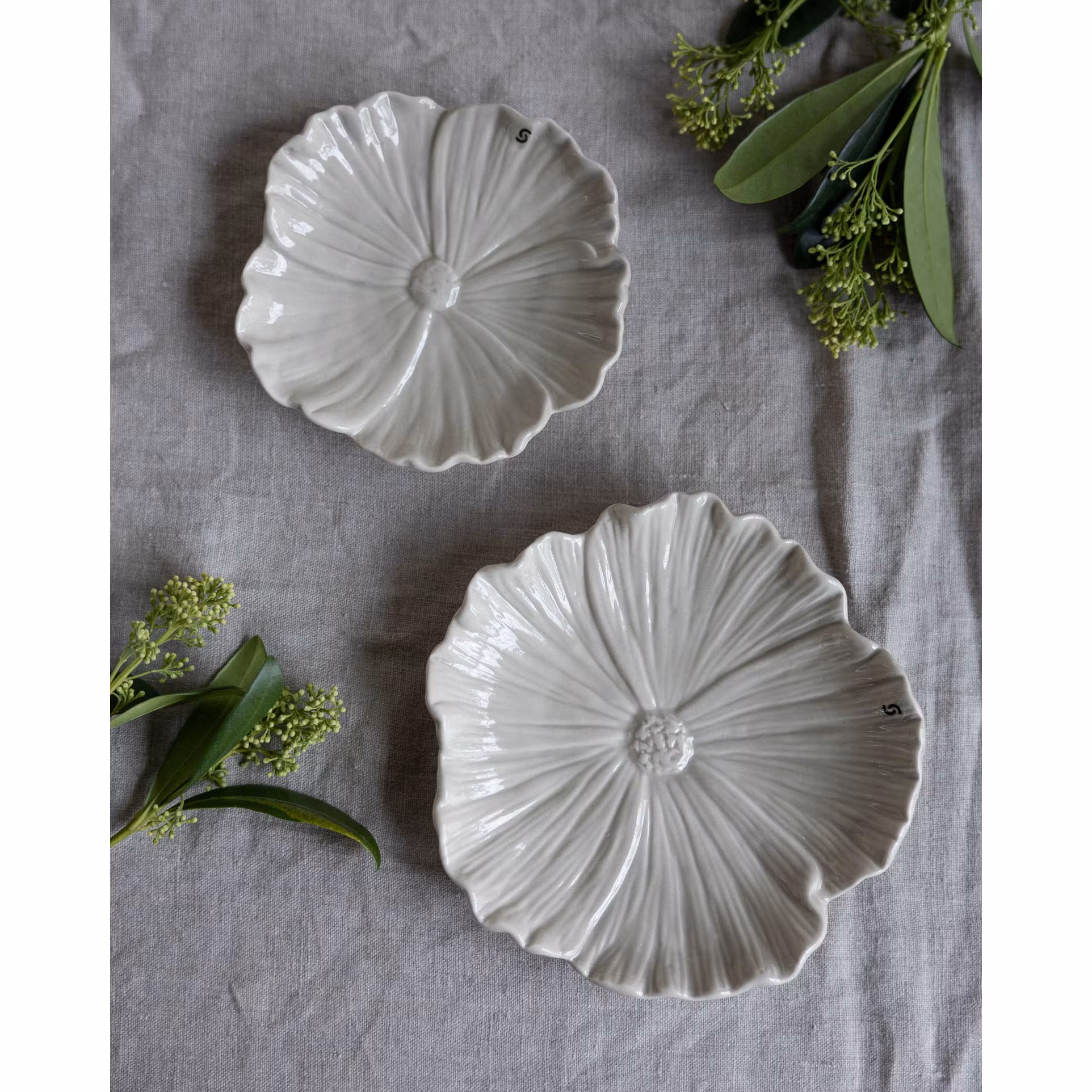 Keramikfat i form av en blomma. Detta vackra fat är både dekorativt och funktionellt, och passar perfekt för smycken, snacks eller bara som en iögonfallande dekoration.
