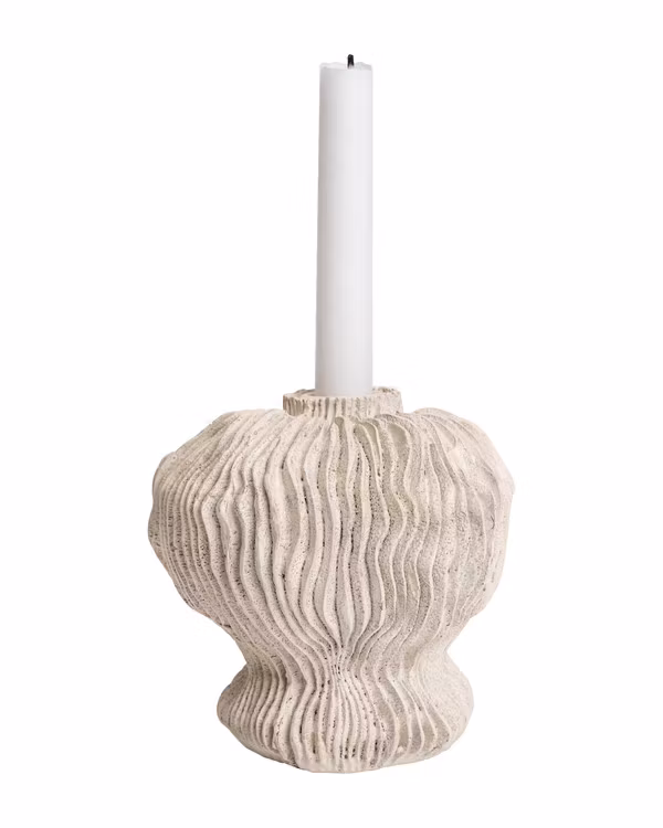 Charmig ljusstake i polyresin med vågig struktur samt snygg inredningsdetalj. Mått: 13x12.8x12.3 CM