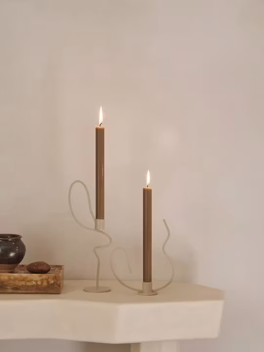 Valse ljusstake low från Ferm Living är tillverkad av pulverlackerat stål. Dess flytande och vågiga form inspireras av den graciösa rörelsen i valsdansen, vilket ger den en elegant och inbjudande karaktär.