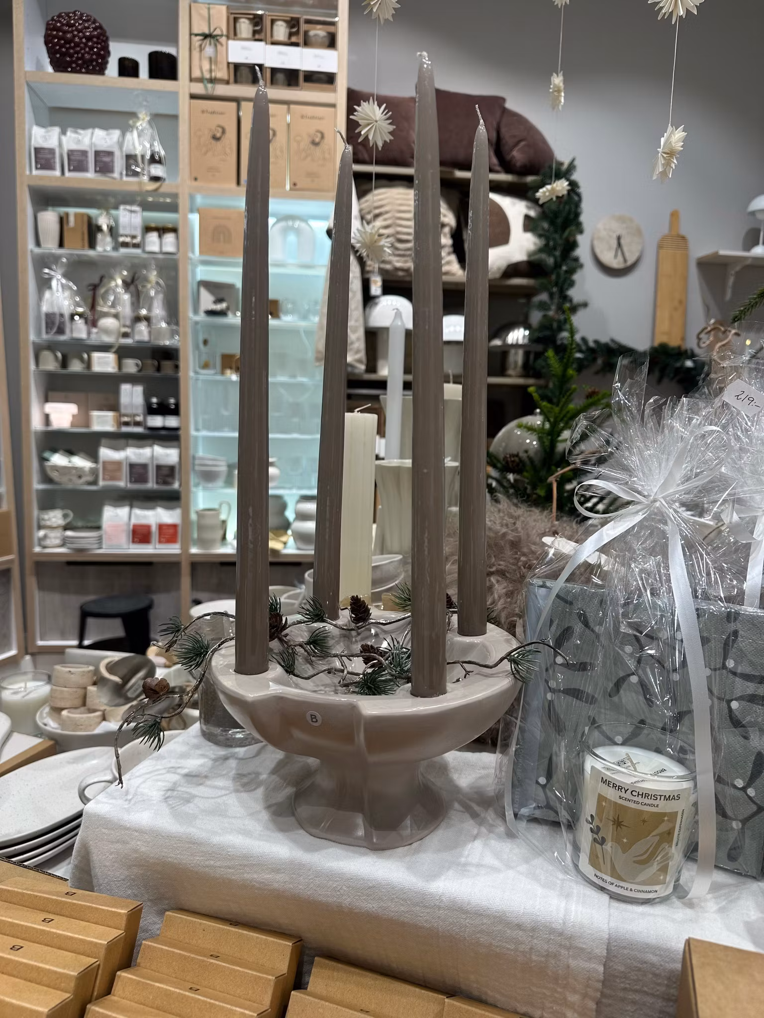Leda ljusstake Ø22x12 cm från danska Broste Copenhagen är en ljusstake i keramik med en skål i mitten. I skålen kan du placera små juldekorationer, nötter eller godis. Leda ljusstake har plats för fyra stearinljus och den minimalistiska designen gör att ljusstaken fungerar som en fin inredningsdetalj året om.