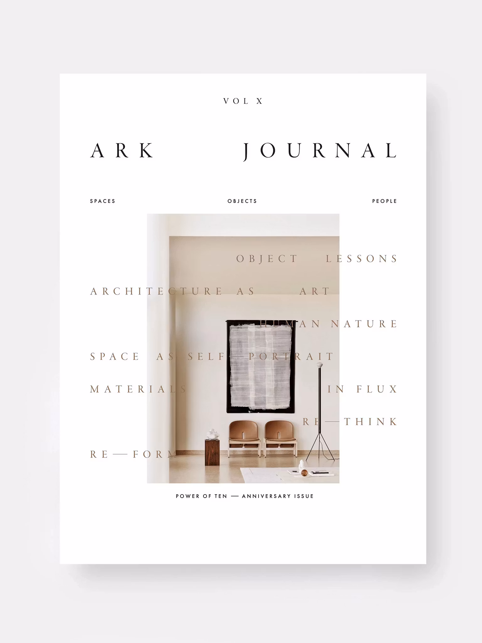 Ark Journal Volume 10 is a tribute to the worlds of design and architecture – past, present, and future. This issue is about intersections of human life with architecture and design, uncovering the profound impact they can have on our lives at home and in public spaces. You will visit designer Phillip Lim´s beachside house in Long Island; a historic house in Düsseldorf remade for the artist Su Xiaobai; a brutalist home in Bruges; Henri Timi’s workshop in Marche, to name a few. Read an interview with Formafantasma and Tadao Ando and explore how Colin King styled and curated the craft culture-centred collection of American designer Jack Lenor Larsen.