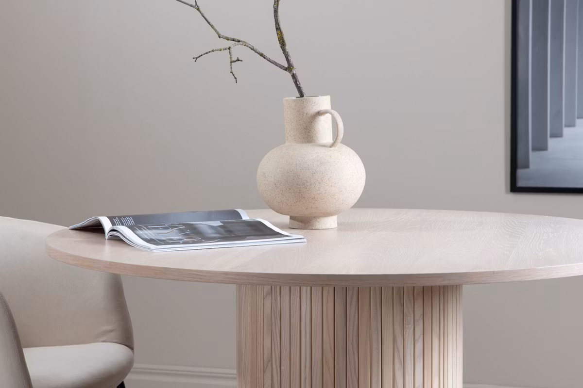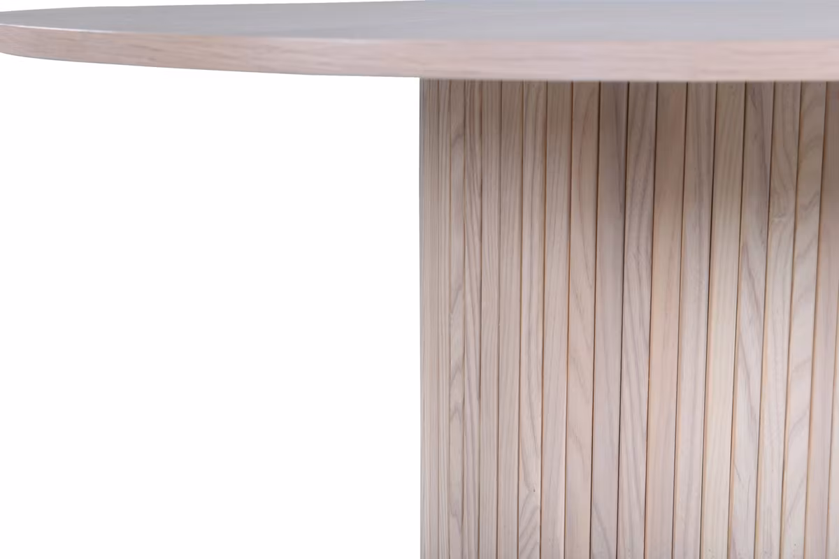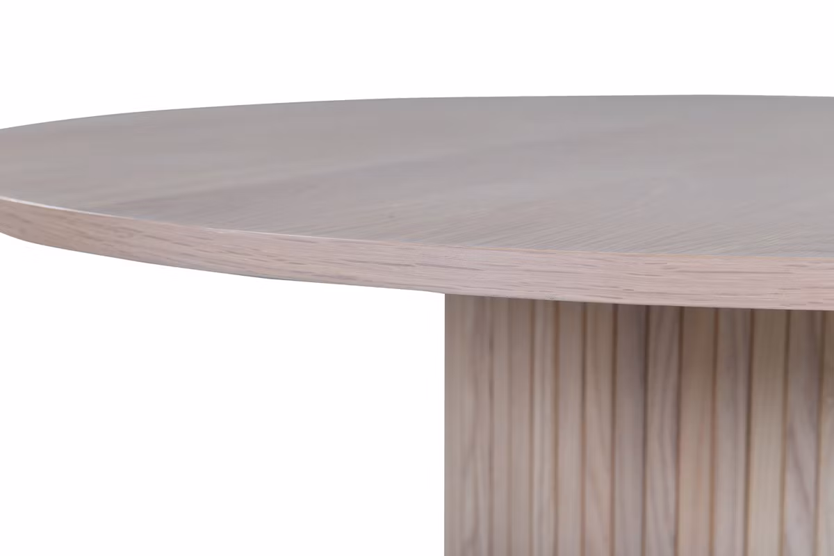 Skapa en härlig gemenskap kring vårt runda matbord Bianca i modemedveten design! Bordsskivan är tillverkad i MDF och har en cylinderformad stomme i robust utformning och ribbad design. Den genomgående putsat vita kulören är lika tidlös som snygg och enkel att matcha med övrig inredning. Förhöj inredningskänslan och låt tiden här bli till en av dagens höjdpunkter! Skötselråd: MDF-skivor som är målade eller lackade är känsliga för repor och skador. Var därför varsam med skivorna för att undvika detta. Ytor målade med lack med färgpigment eller målarfärg har en pigmentering som ger en ej täckande genomskinlig yta.