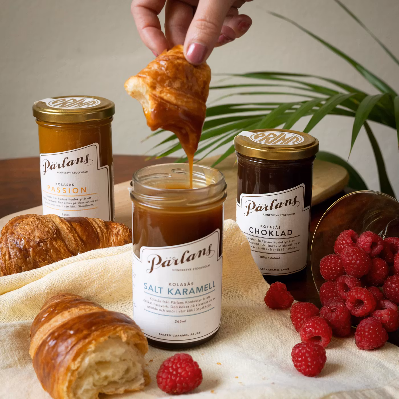 Vår kolasås är vansinnigt god till glass, gärna varm, men också delikat ringlad över pannkakor, frukt och bär, och utmärkt som fyllning i bakverk. Prova dig fram, kanske är den alldeles magisk till just din favoritdessert. Eller, för all del, varför inte skopa in den i munnen precis som den är!