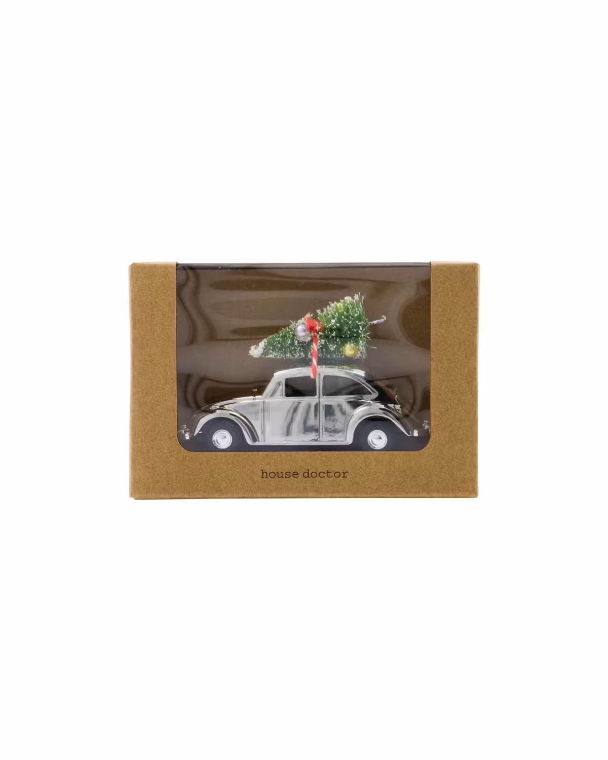 "Förgyll ditt julfirande med denna charmiga dekorativa bil i miniatyr. Den silverfärgade bilen har ett litet julträd med färgglada kulor på taket, vilket skapar en nostalgisk känsla av jultraditioner. Placera den på julbordet för att skapa en varm och inbjudande atmosfär.