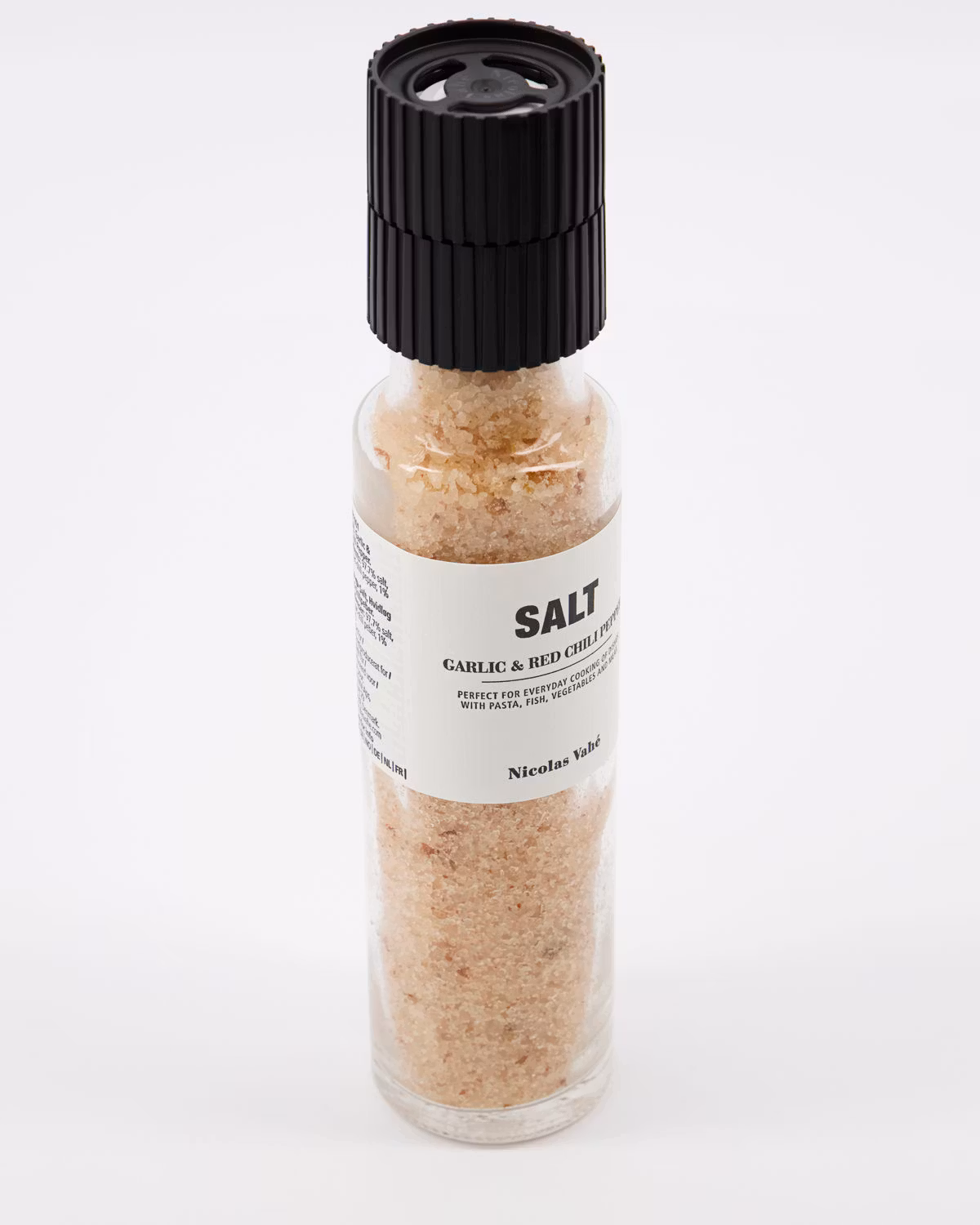 Give your dishes some heat with this sea salt blend from Nicolas Vahé. Dried garlic and red chilli pepper come together to elevate the flavours in Asian and Mexican dishes alike. It is equally ideal for pasta dishes when you want to turn up the heat. Varje kvarn kommer med en keramisk mortel så att du kan skapa riktigt finkorniga kryddor som släpper loss aromen och smaken i dina rätter.