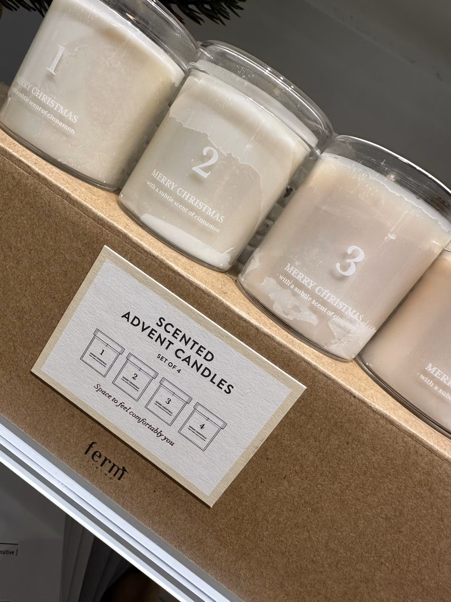 Markera nedräkningen till jul med ett mysigt set av Scented Advent Candles - Set of 4 Var och en av de små glasljusstakarna är märkt med ett nummer för de fyra söndagarna i december, och alla bär på en subtil doft av kanel som framkallar en karaktäristiskt julig känsla.