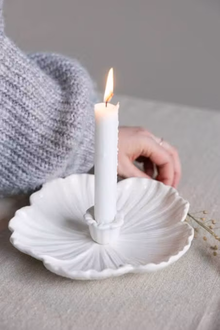 Keramikljusstake i form av en blomma. Detta vackra konstverk är både dekorativt och funktionellt. Placera ljusstaken i mitten av matbordet för att skapa en mysig känsla, eller ställ den bredvid sängen och använd den även som förvaring för smycken.