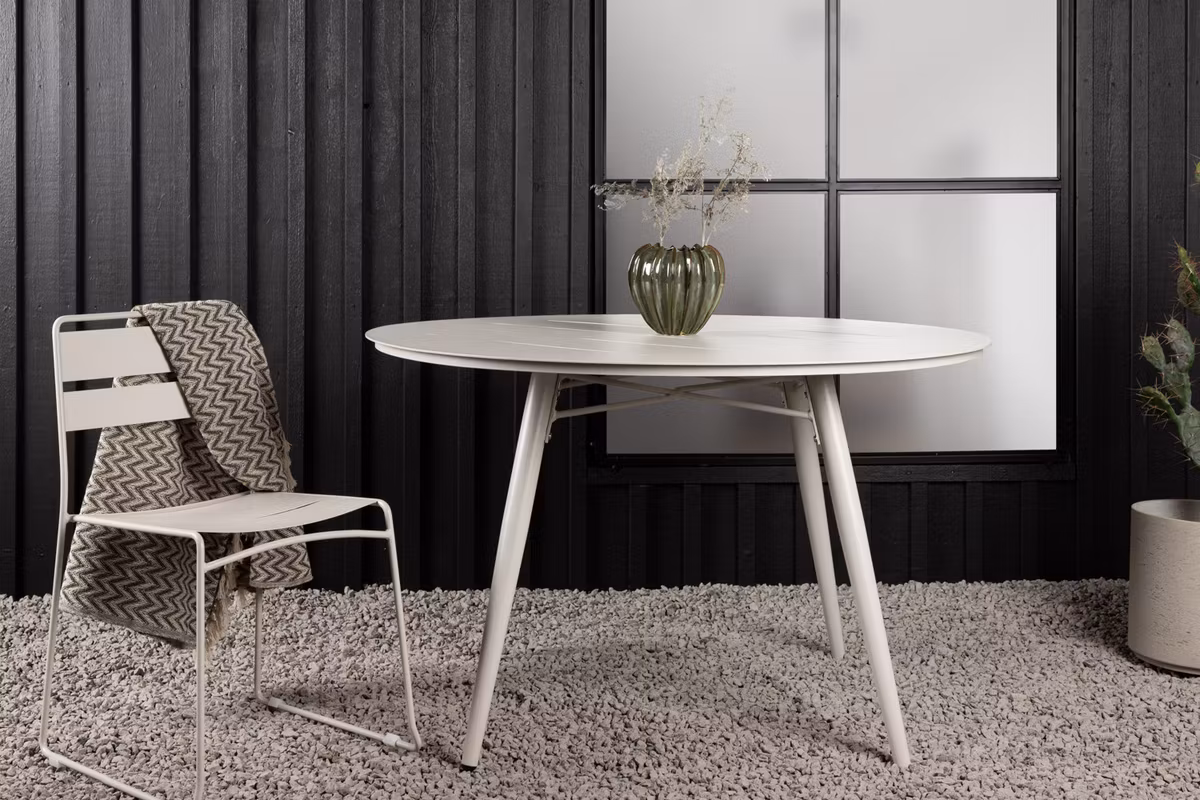 Ett bord för alla sommarens middagar, den runda designen skapar en gemenskap med dina gäster. Ett stilrent och modernt bord i beiget som passar de flesta uteplatser och altaner. Ger en varm och inbjudande känsla till din uteplats. Låt skratt och samtal flöda här i sommar!
