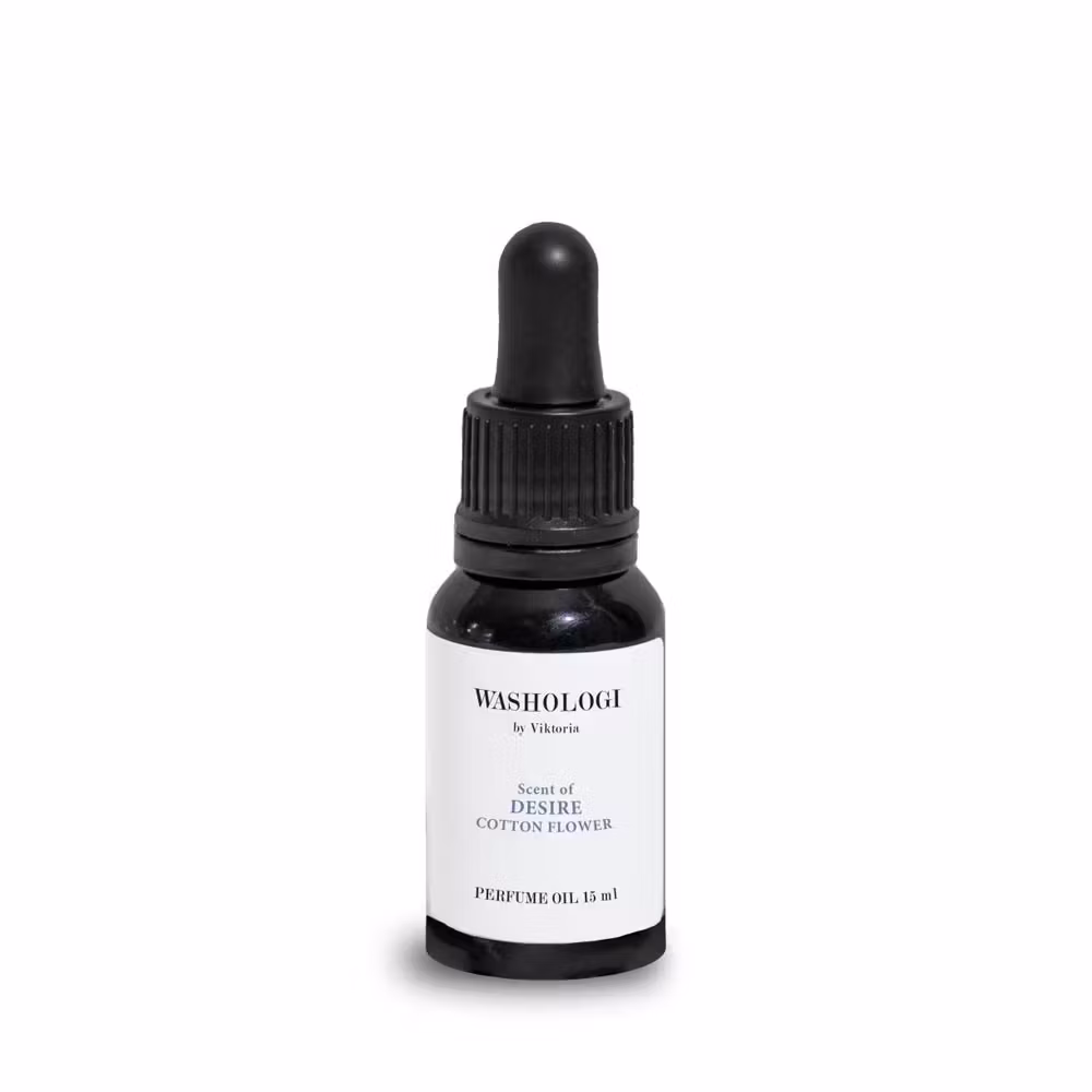 Perfume Oil Scent of Desire har en användarvänlig pipett för enkel dosering. Dessa kan användas till WASHOLOGIs organiska ullbollar för en god doft vid torktumling samt till aroma diffusers.15 ml.