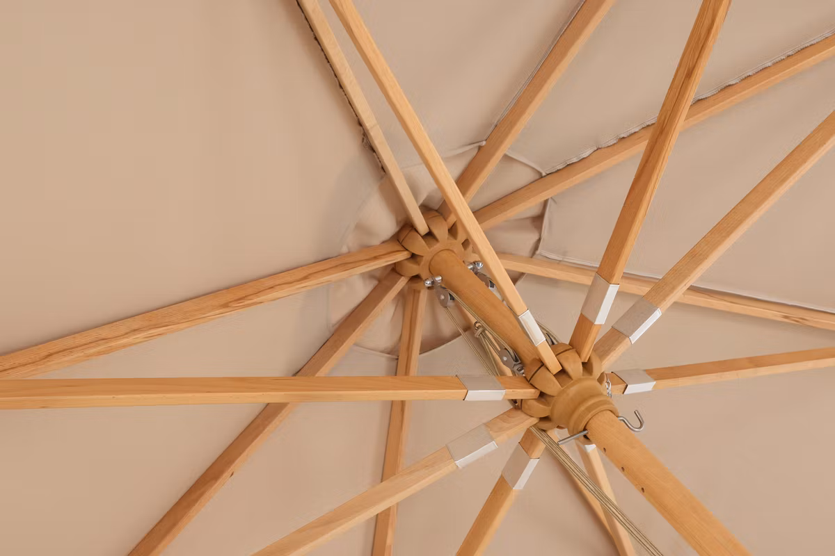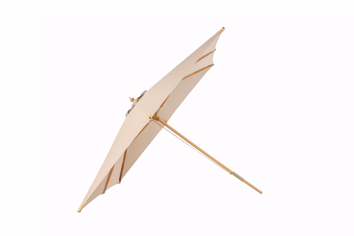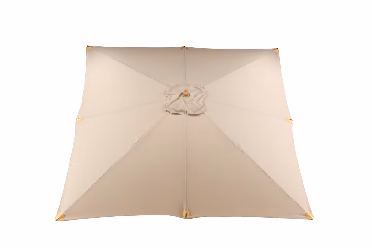 Naxos - ett smakfullt och fristående parasoll i något högre och bredare modell! Tyget är i jordnära brun kulör och stommen i stilfullt trä. Placera nära matgruppen och bestäm själv när du önskar skugga - passar utmärkt både som solskydd och blir en stilfull detalj vid utemöblerna. Mått: 3x3m