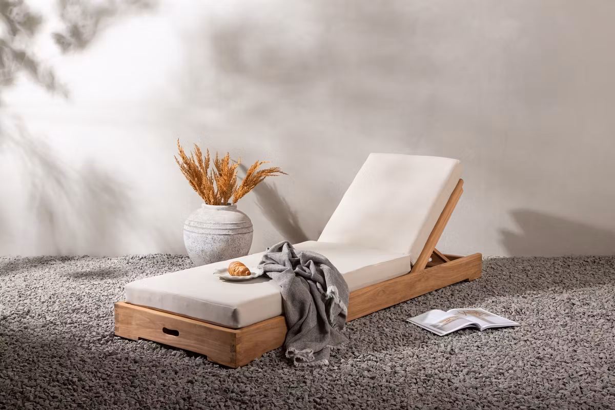 Solsängen från serien Kenya i teak utgör en tidlös och stilren design som passar i många miljöer. Solsängen har ett fällbart ryggstöd som går att justera i den vinkeln som känns mest bekväm för stunden och kommer med en beige dyna. Ett måste för alla lata dagar!