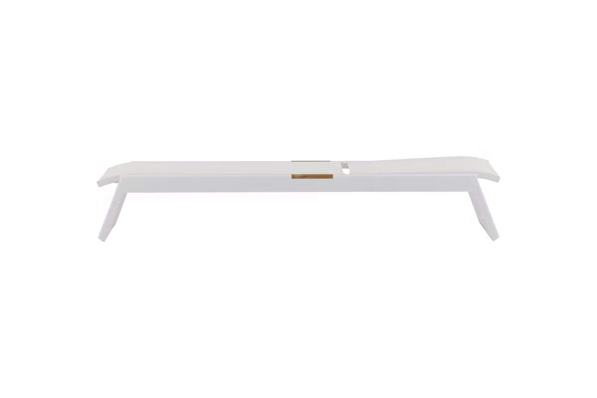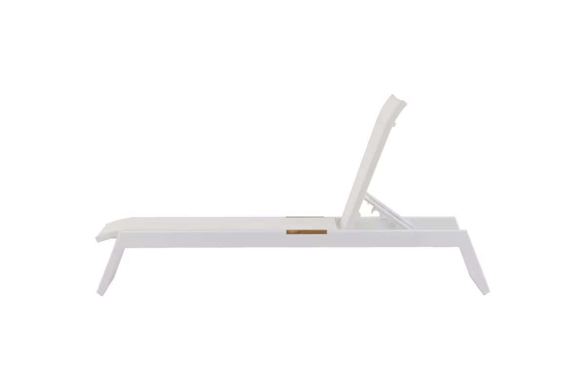 Mexico, en snygg vit solsäng med dekorativa trädetaljer och klassiskt utförande. Solsängen har ett justerbart ryggstöd som gör att du enkelt kan välja om du önskar sitta upp eller ligga ner – justera för den optimala vilopositionen. Tillverkad av aluminium och teak lämpas den sig utmärkt för utomhusbruk, följ våra skötselråd så får du en solsäng som håller länge. Njut av soliga sommardagar i en bekväm och iögonfallande solsäng. Skötselråd: Utemöbler i aluminium och rostfritt stål bör rengöras regelbundet med vatten och mild tvål. Skölj alltid noggrant med rikligt med vatten, något som blir extra viktigt om möblerna är placerade på ett havsnära avstånd där salt kan transporteras via luften. Saltet kan leda till korrosion som kan orsaka flagning eller bubblor i lacken. Tvätta inte möblerna med högtryckstvätt, ytan kan skadas av det höga trycket.
