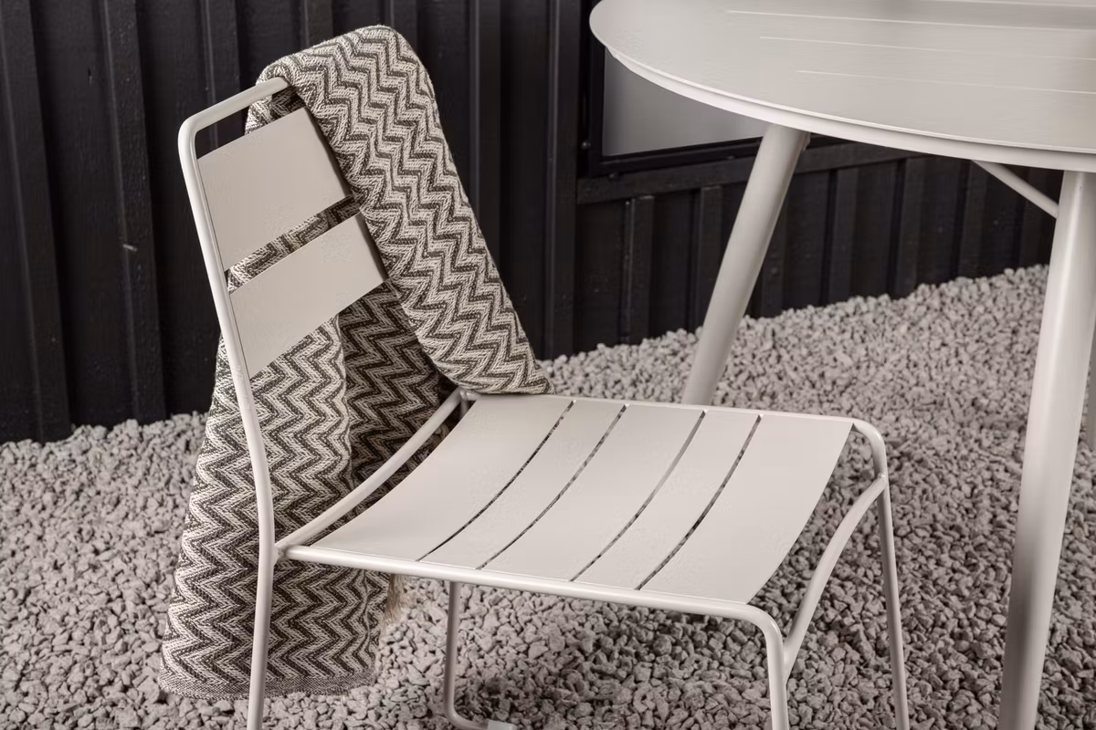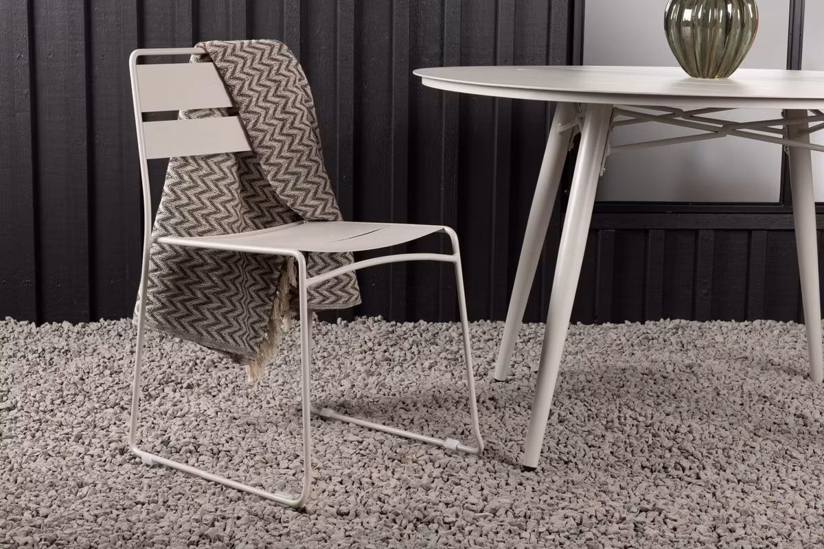 En stilren, klassisk och tidlös design på vår matstol Lina! Den här stolen är stilren i skandinavisk design, tillverkad i beige stål och passar utmärkt i både uterummet och ute på altanen. Den smala, minimalistiska designen gör stolarna lättanpassade och enkla att möblera tillsammans med andra möblemang. Möblera smart och snyggt!