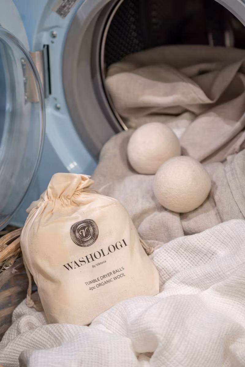 WASHOLOGIs hållbara ekologiska ullbollar 4- pack för din torktumlare. Minskar torktiden med upp till 30% och minskar statisk elektricitet. Ullbollarna gör kläderna mjukare, så traditionella mjukgörare behövs inte. Du kan använda bollarna i cirka 4-5 år, vilket gör dem till ett kostnadseffektivt alternativ. Lägg in ullbollarna tillsammans med de våta, nytvättade kläderna i torktumlaren. Enkelt och hållbart!