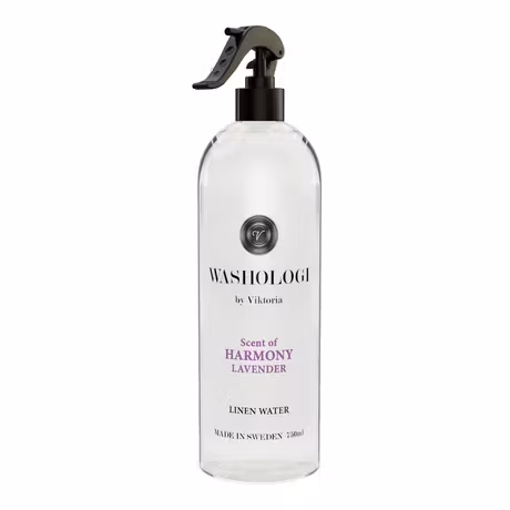 Washologis linen Water HARMONY är vårdande, ger en nytvättad känsla och har en lugnande doft av lavendel. Använd på dina plagg som en uppfräschning eller till annat du vill ska dofta gott! För miljöns skull innehåller våra linnevatten inga färgämnen och vi använder endast naturligt extrakt i parfymen. Minskar även statisk elektricitet.